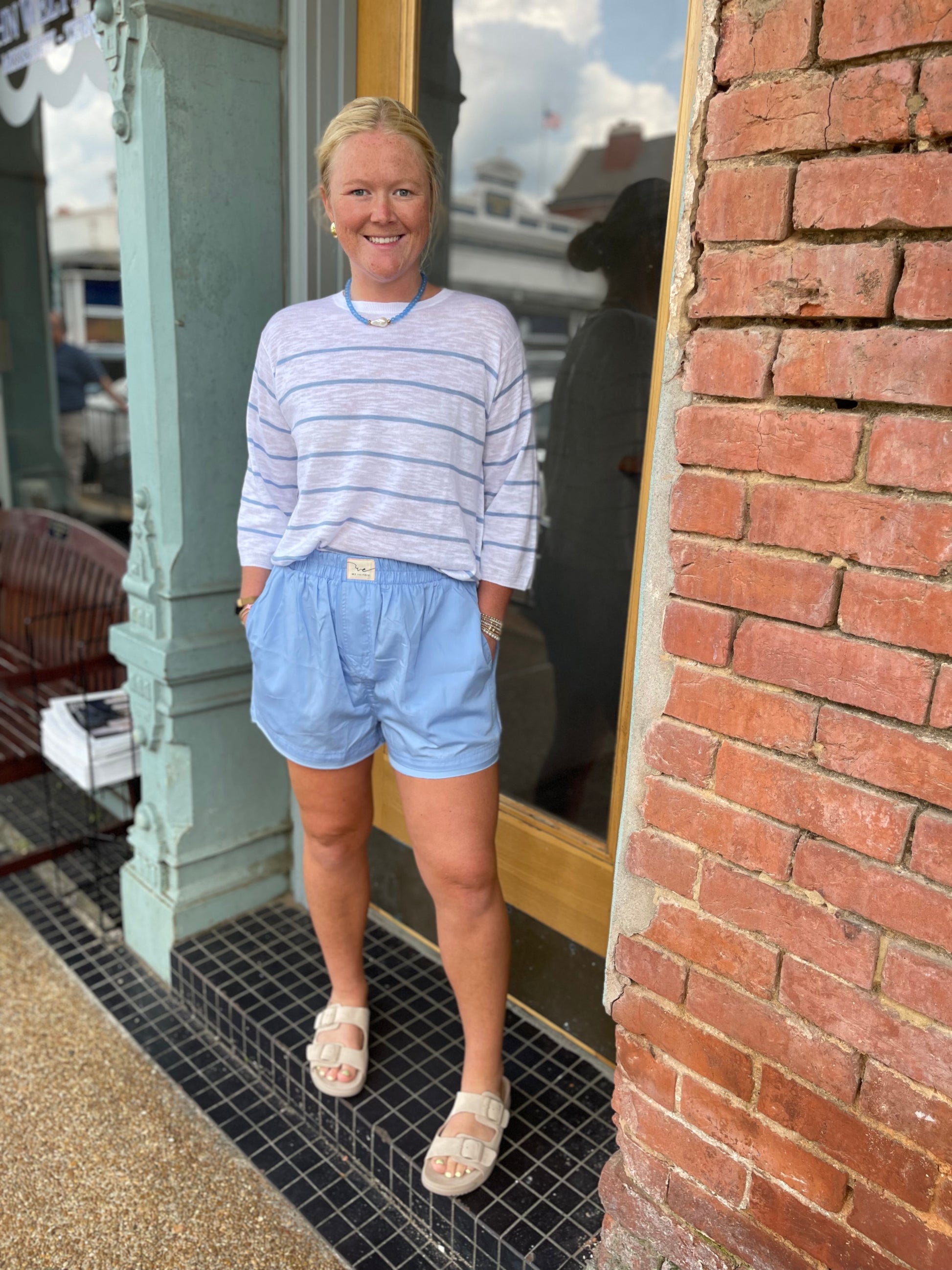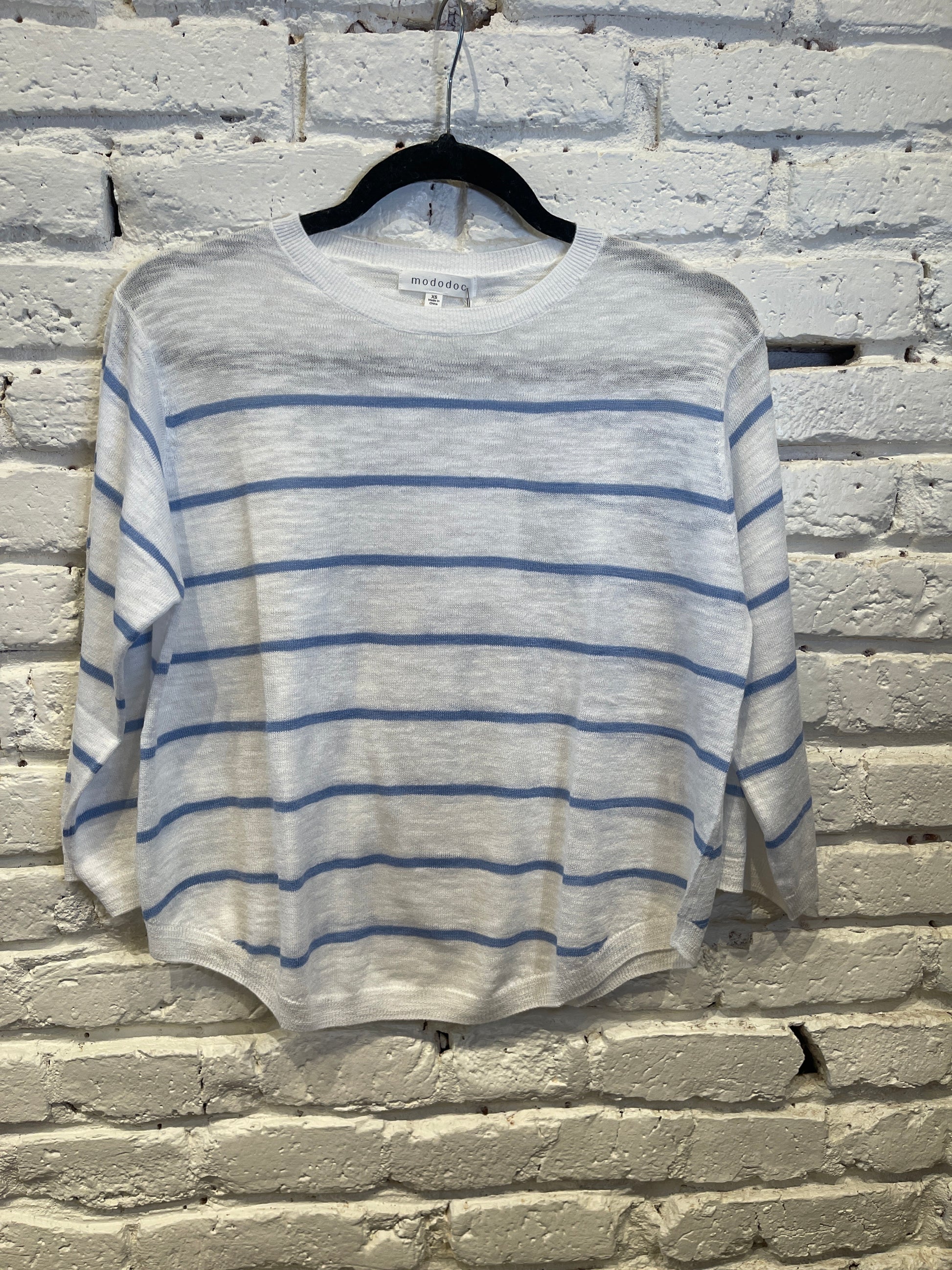 3/4 SLEEVE STRIPE SWING SWEATER