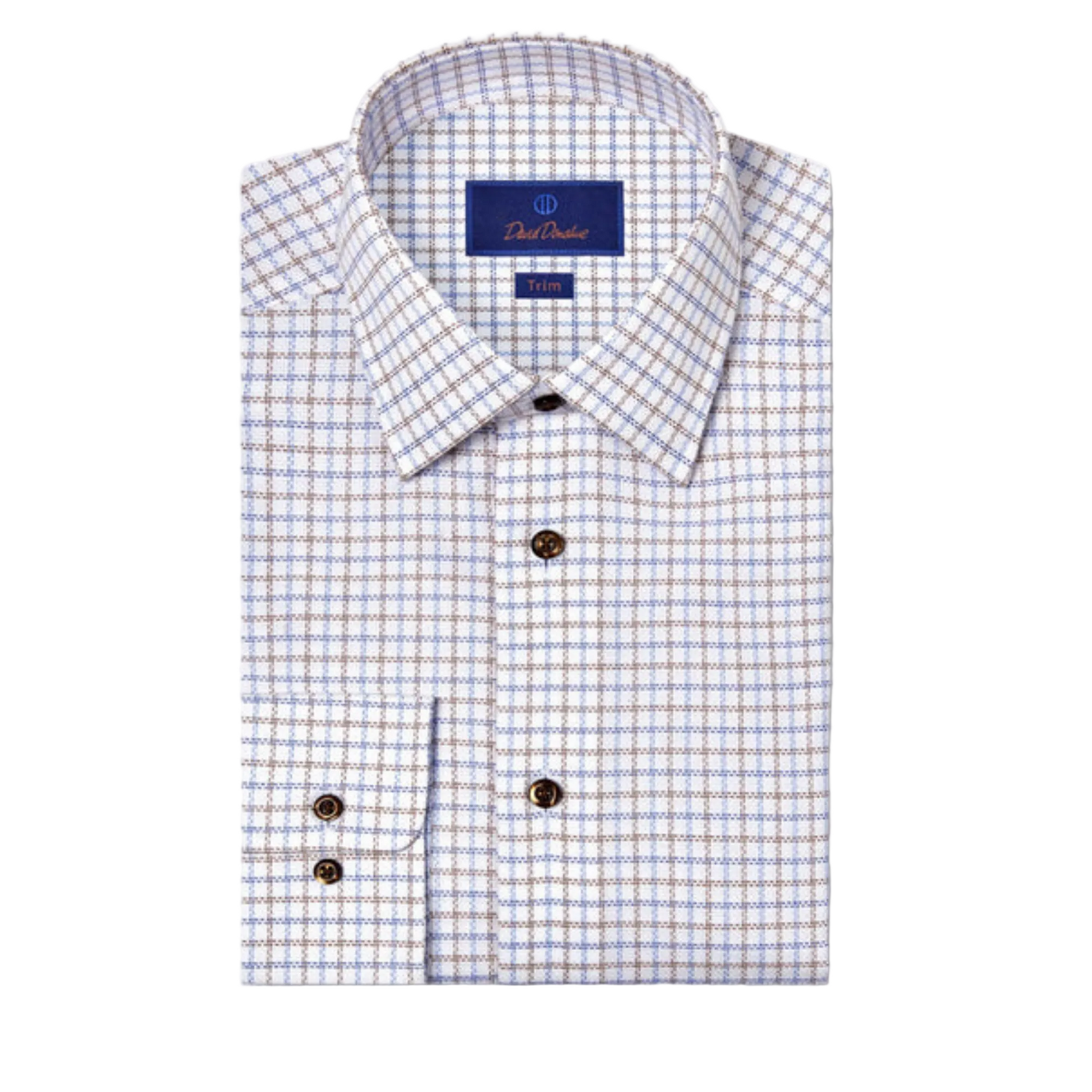 Blue & Brown Textured Check Dress Shirt