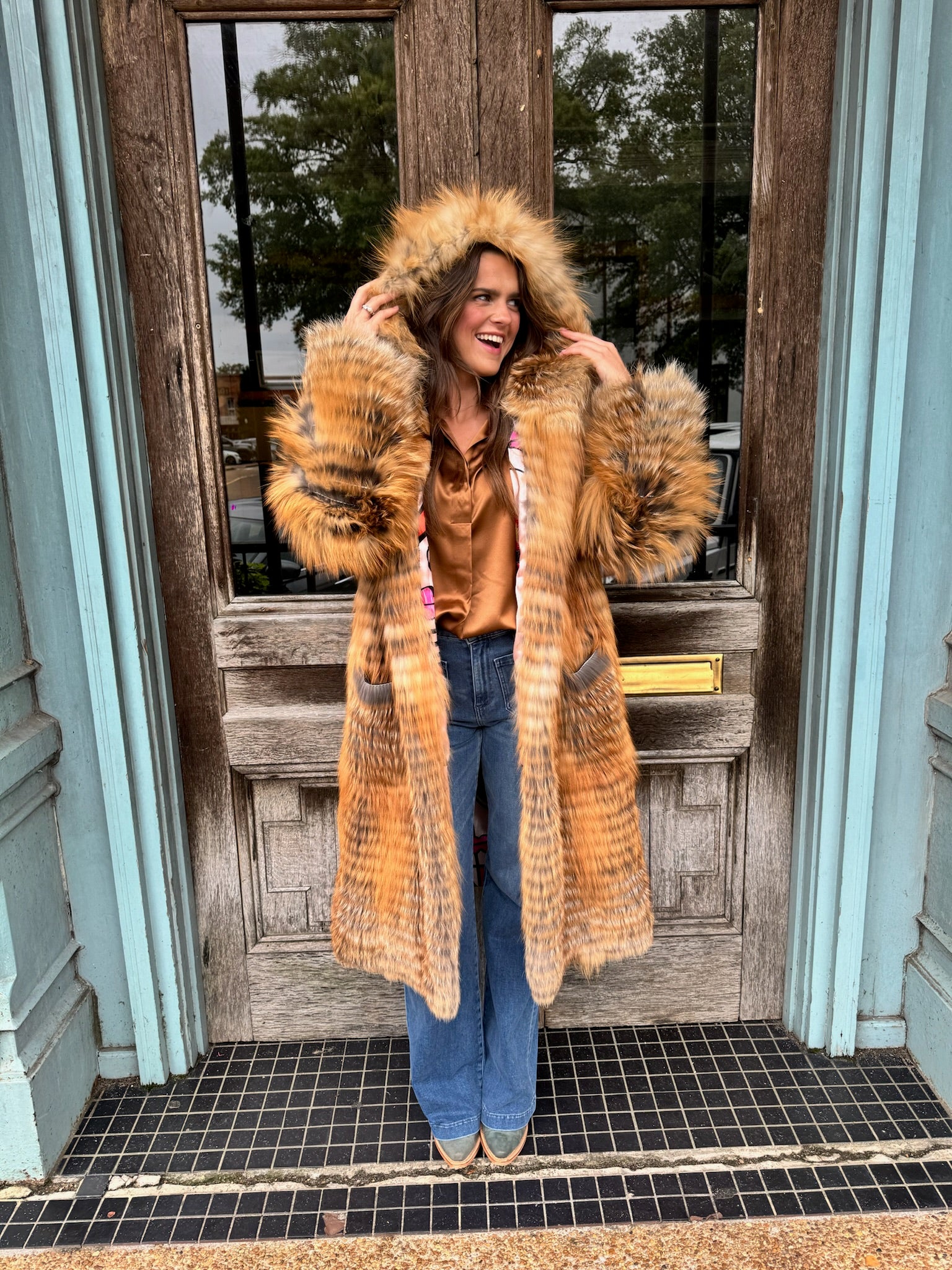 HOODED FEATHERED FULL LENGTH GENUINE FUR DMA1938