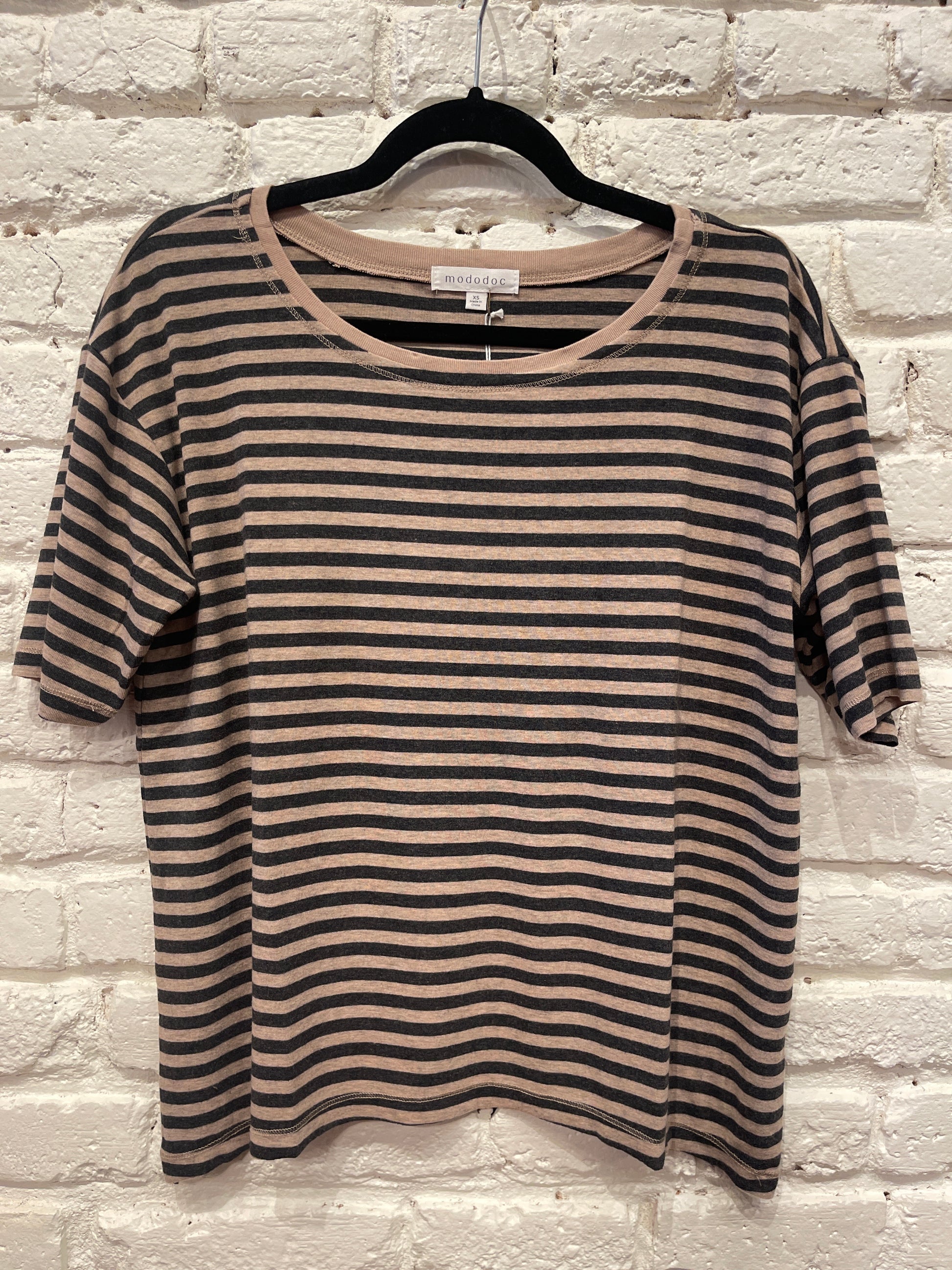 HALF SLV SWING TEE DK OAT STRIPE