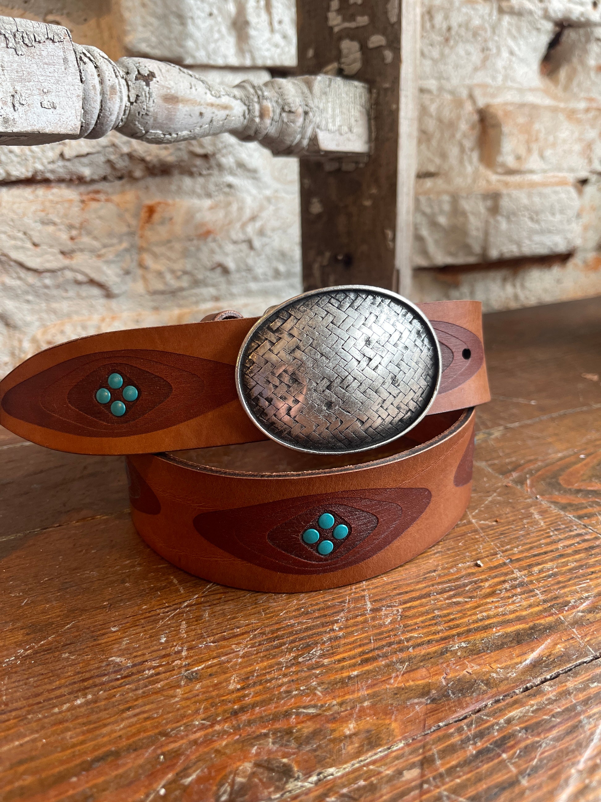 ITALIAN CENTER SKIVE RIVET COGNAC 1.25" BELT