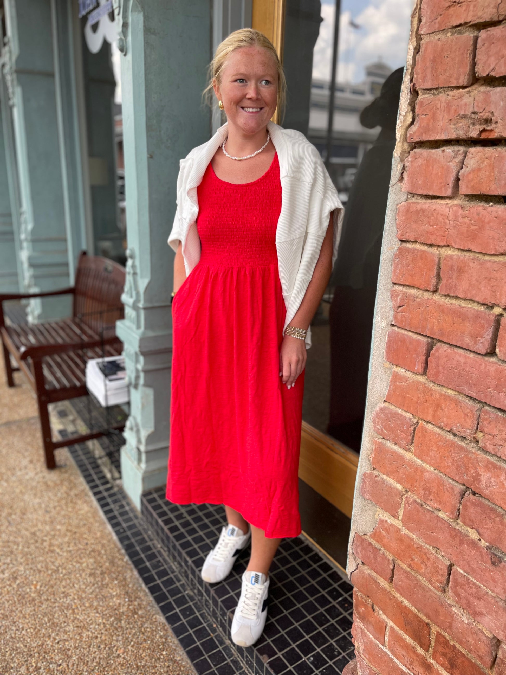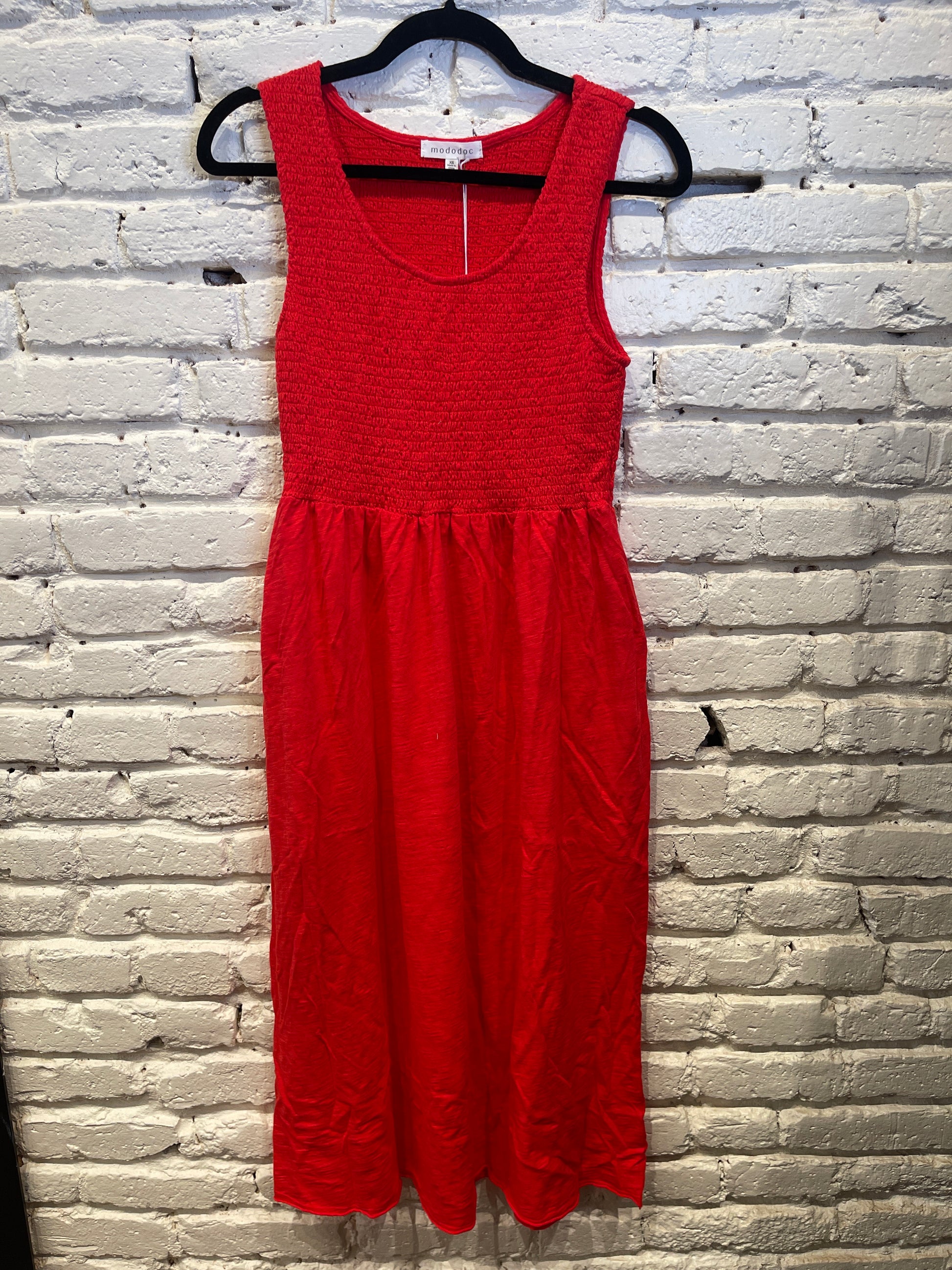 SMOCKED TANK MIDI DRESS RICH APPLE